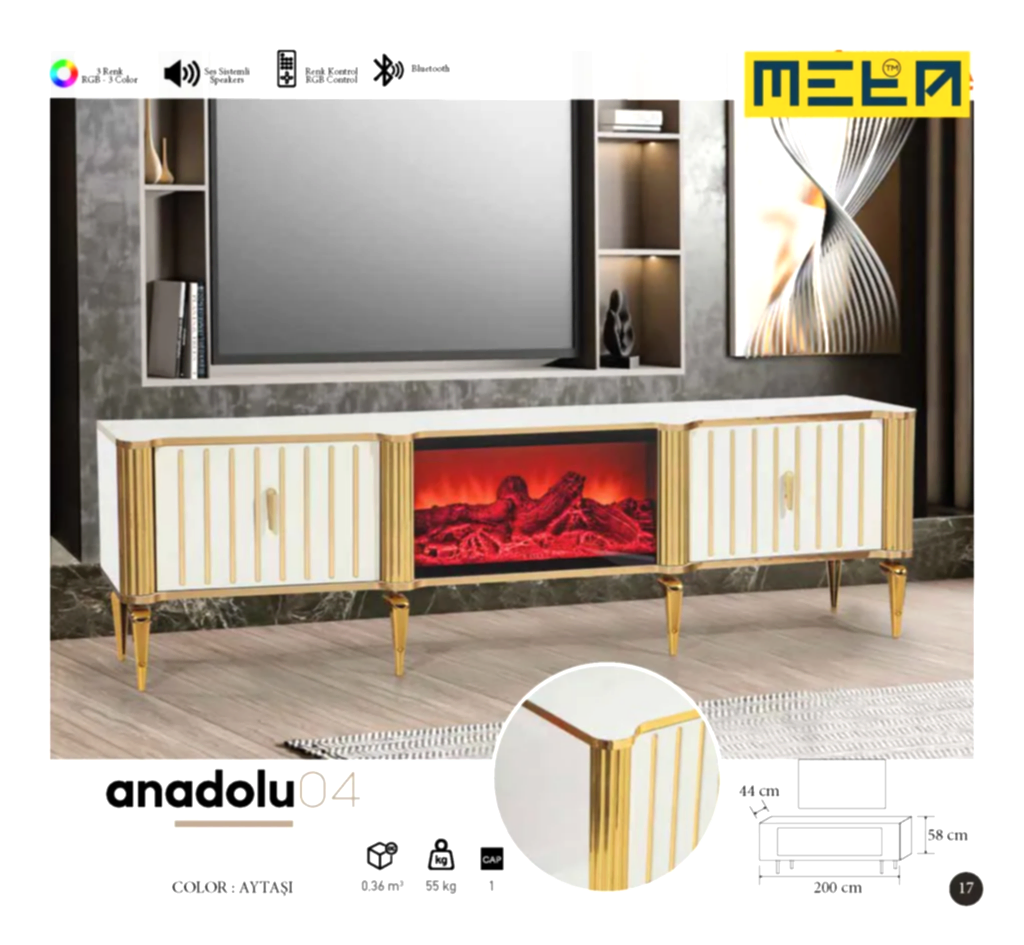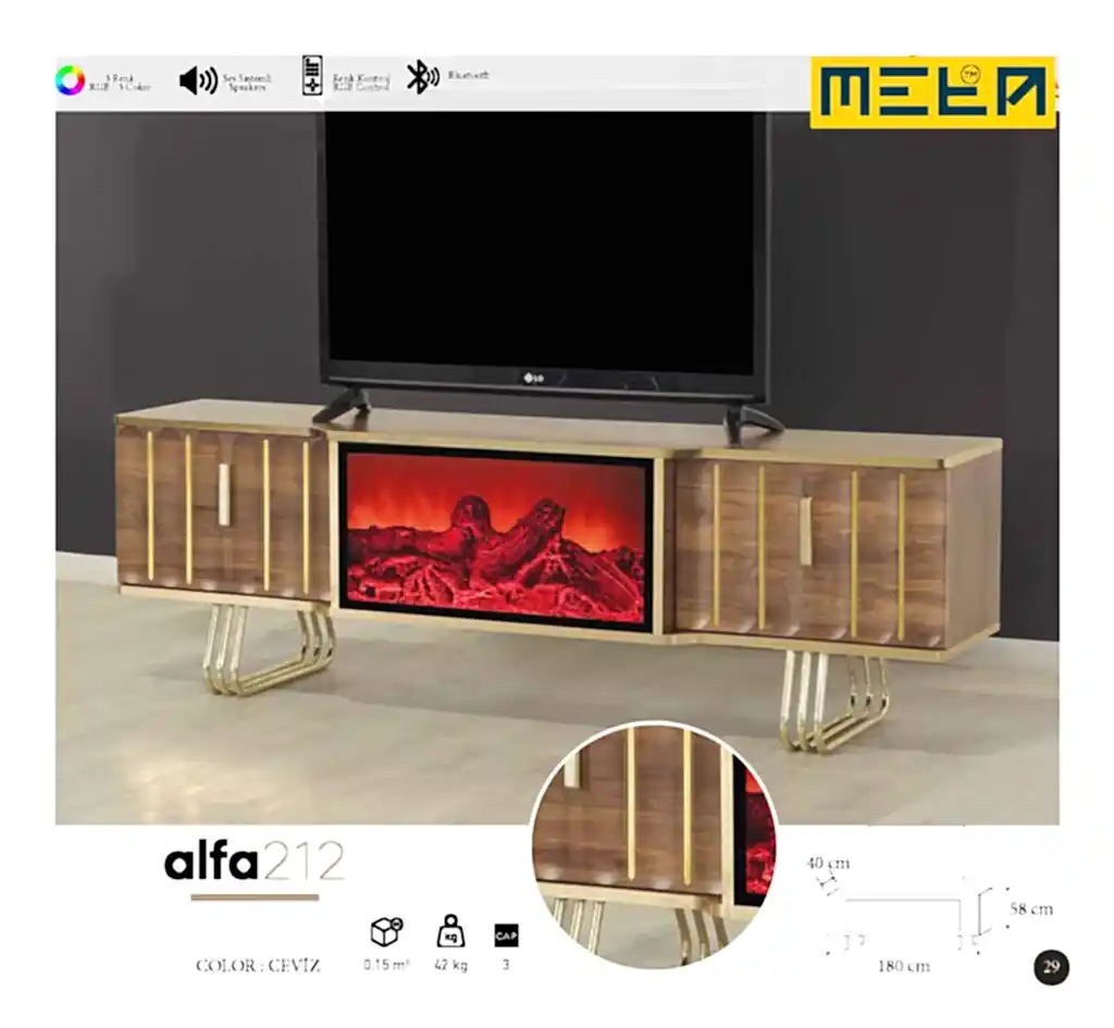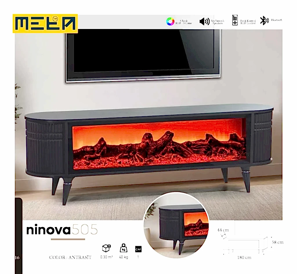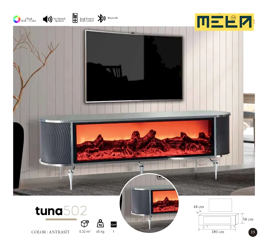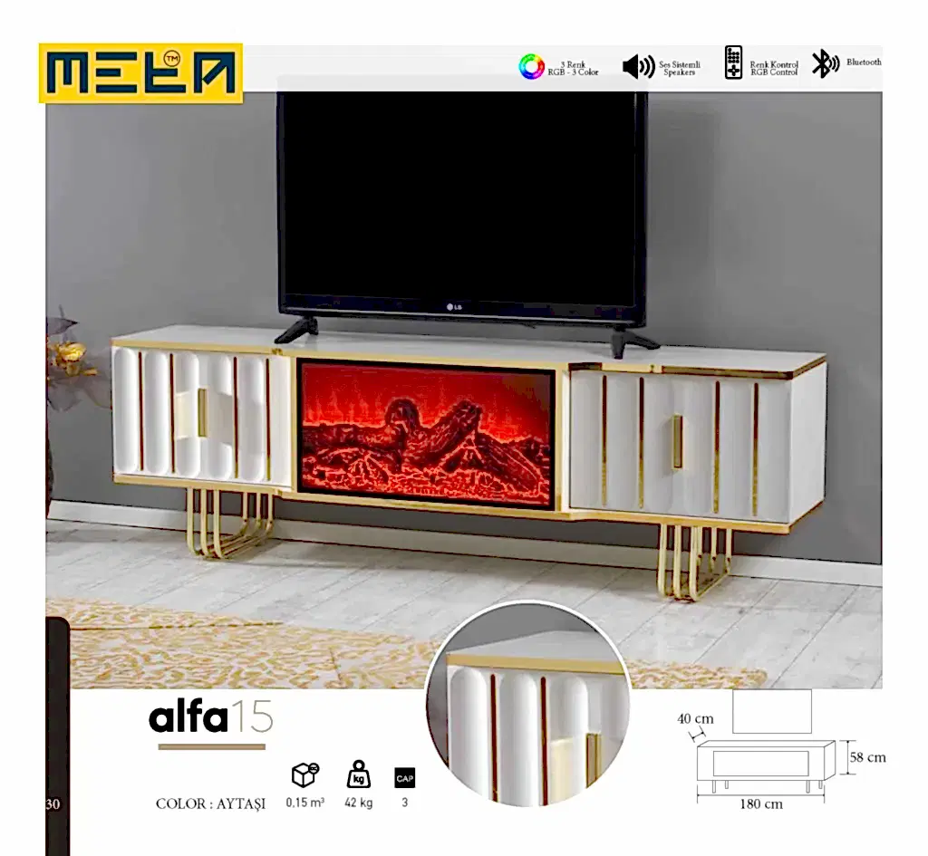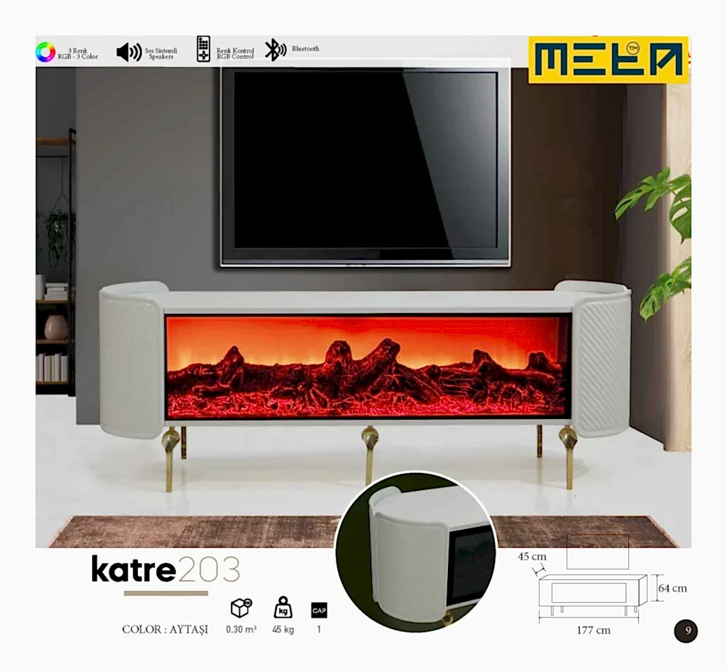 KAYSERI TV STAND WITH FIREPLACE