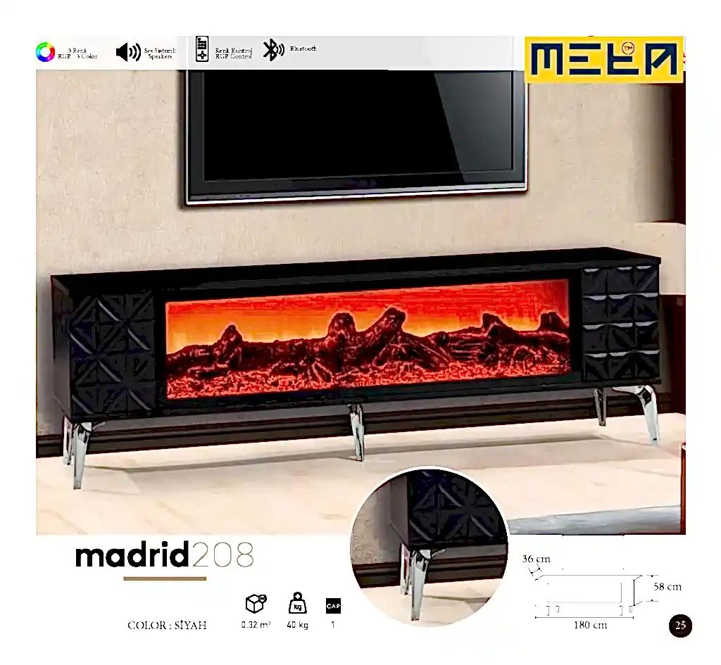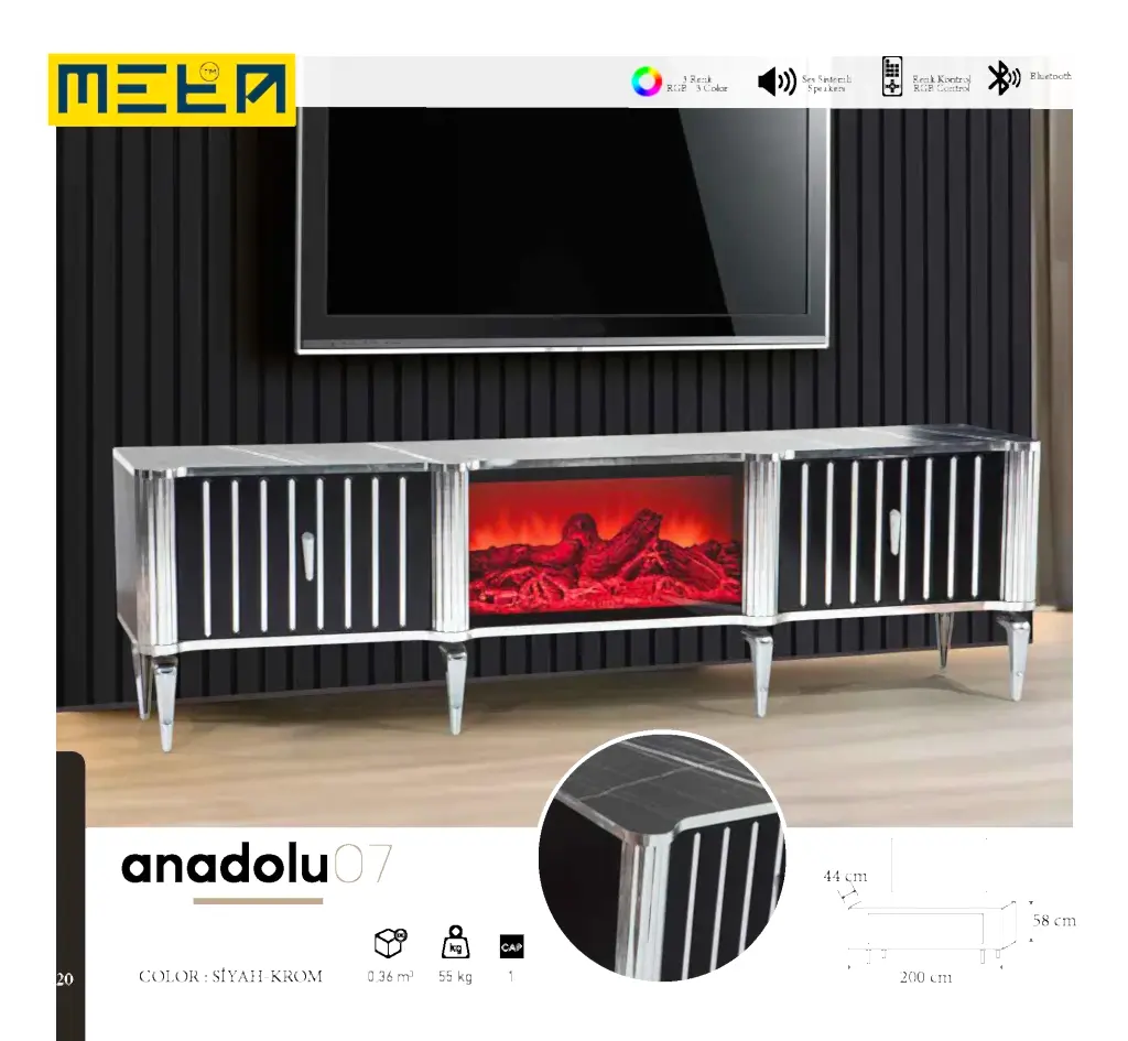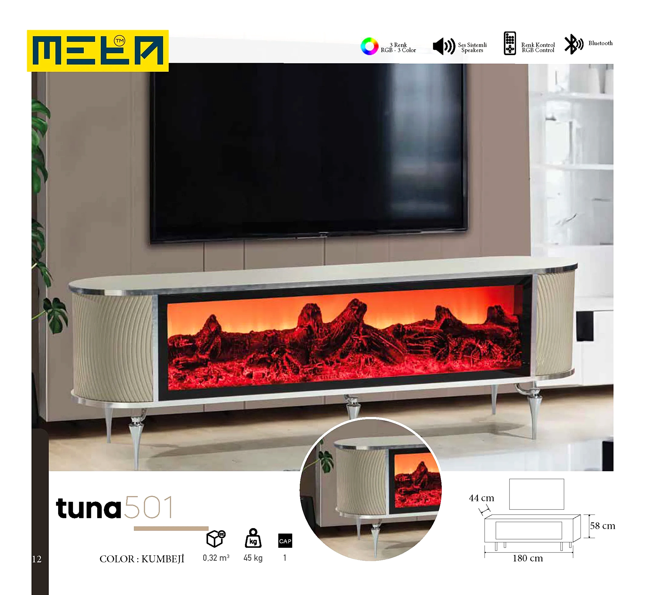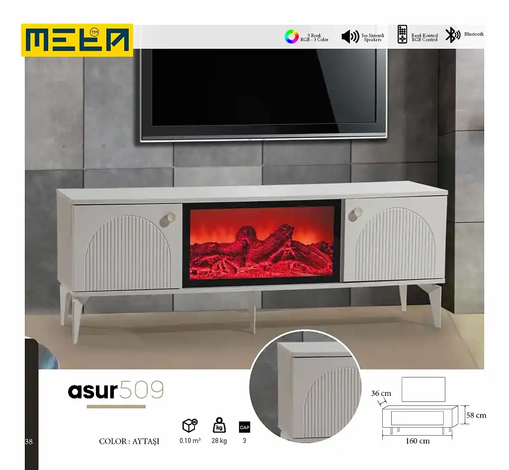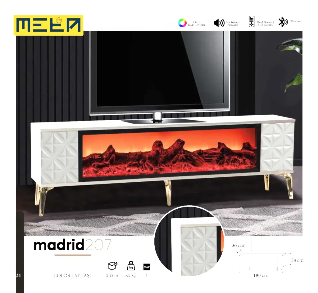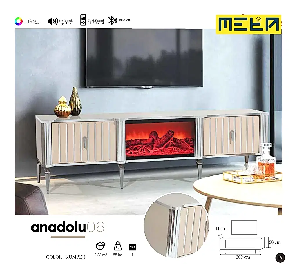KAYSERI TV STAND WITH FIREPLACE