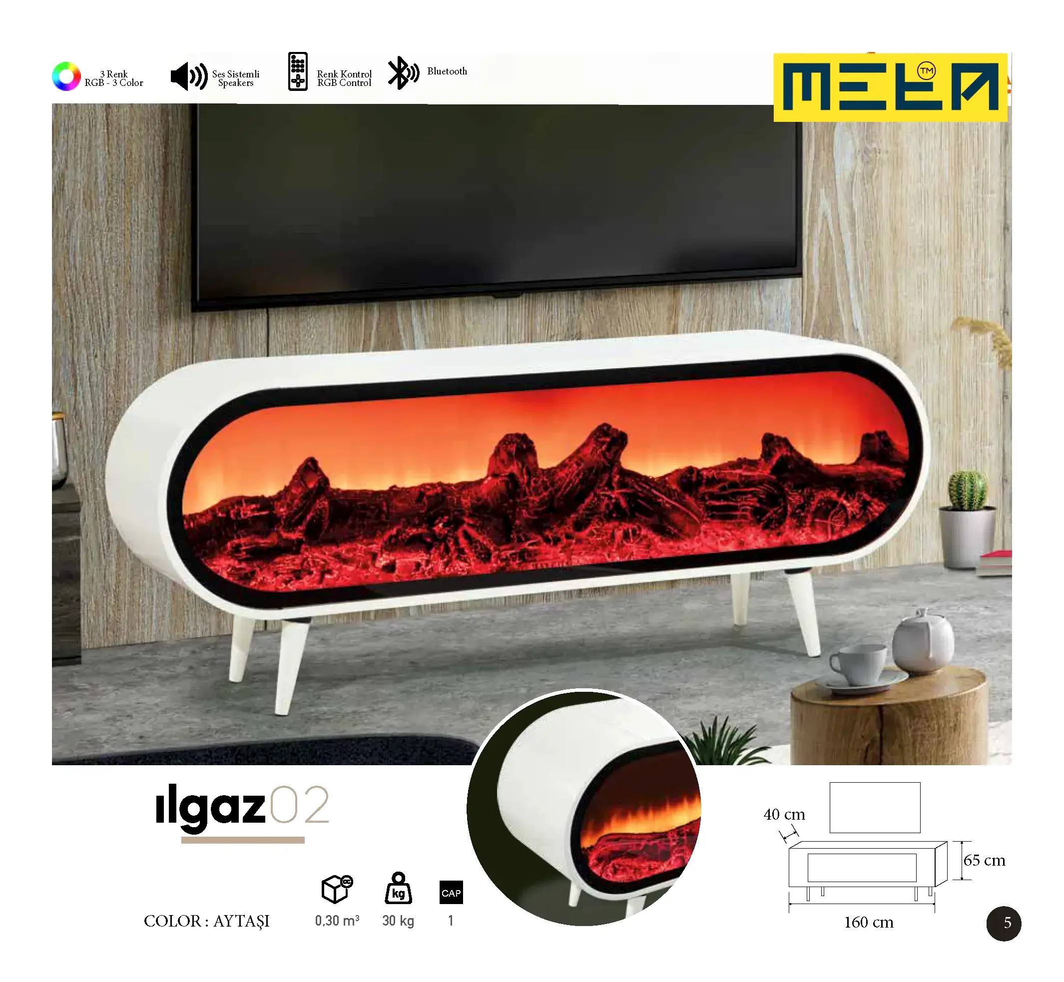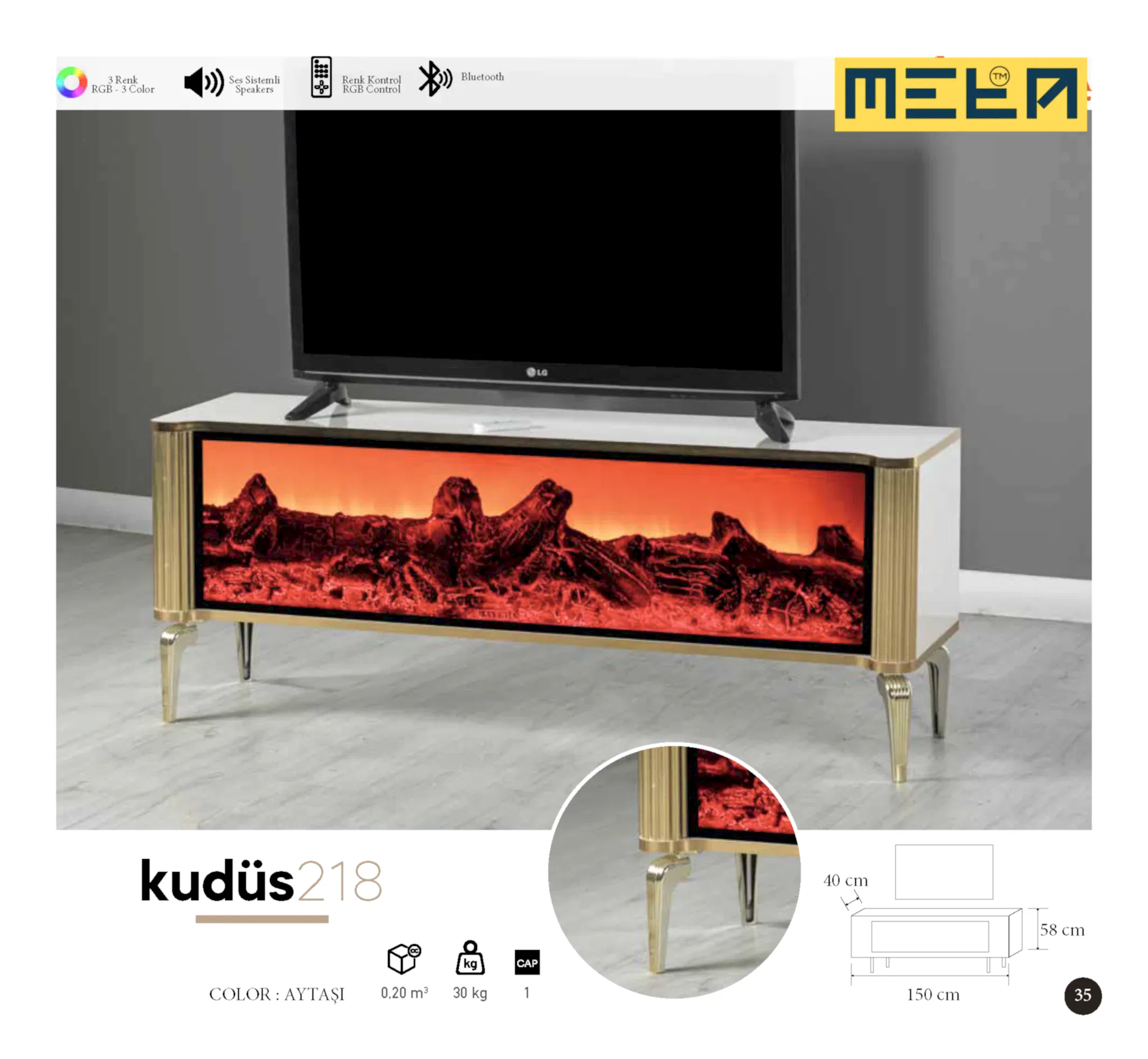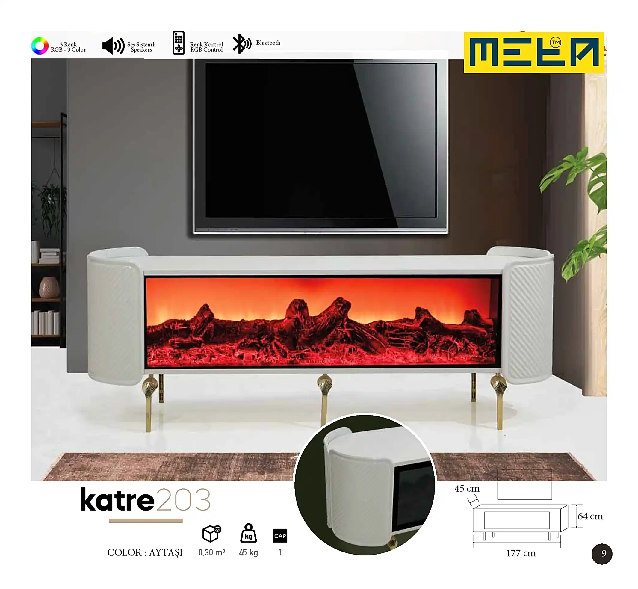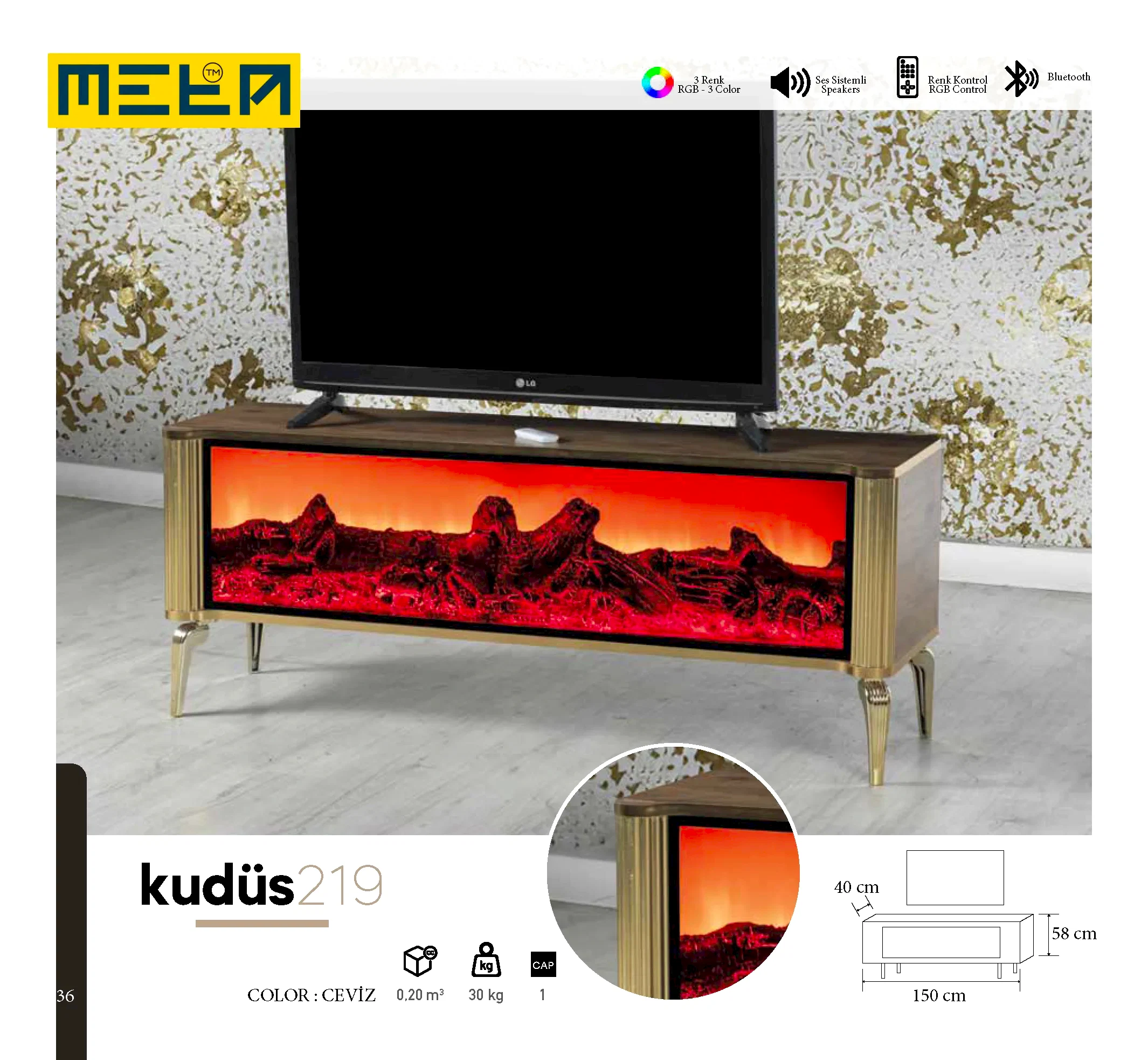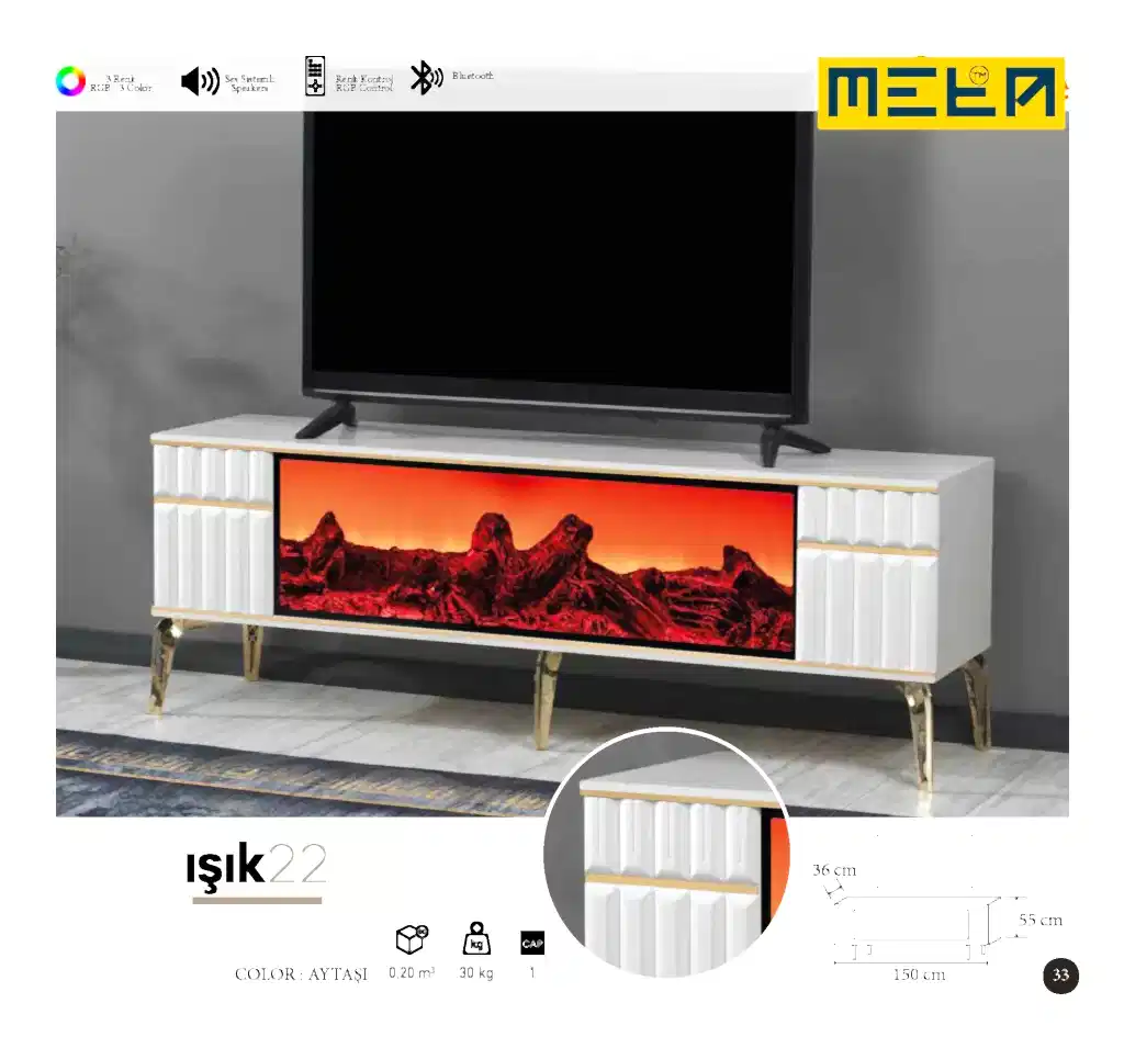KAYSERI TV STAND WITH FIREPLACE
