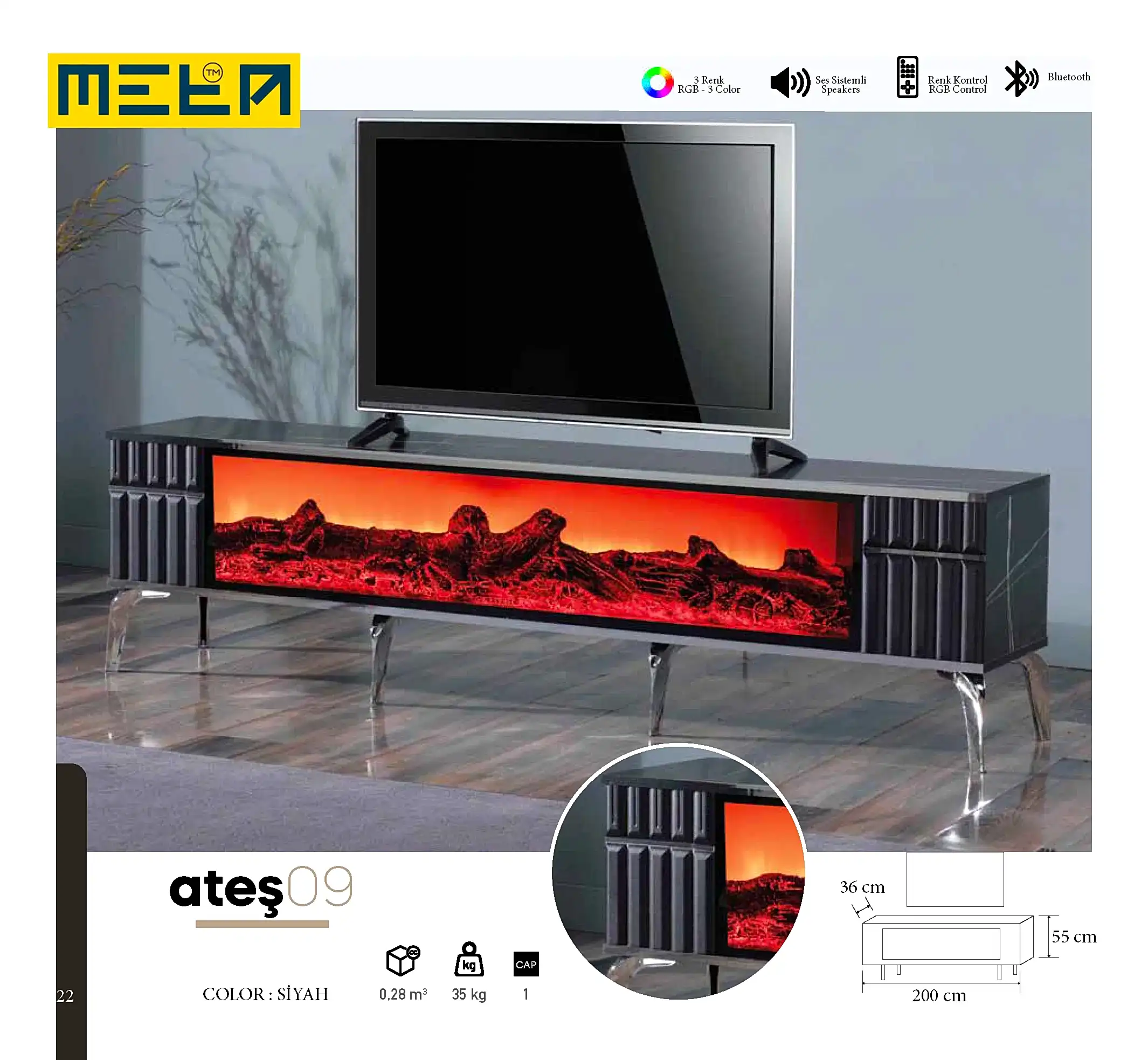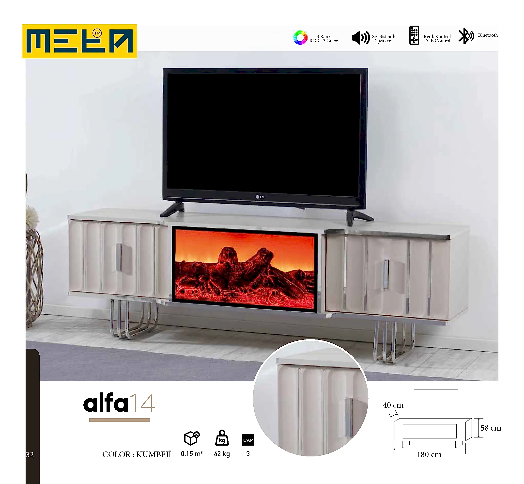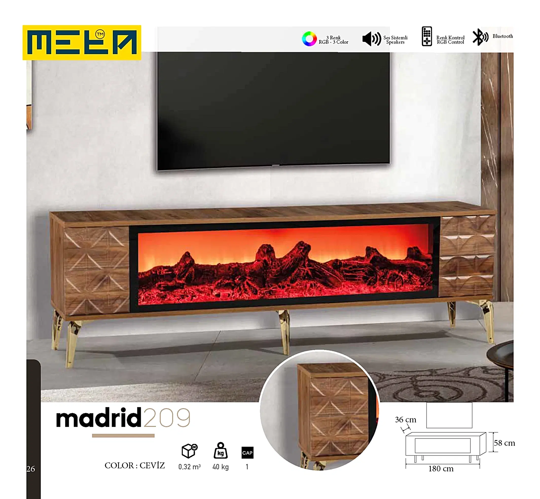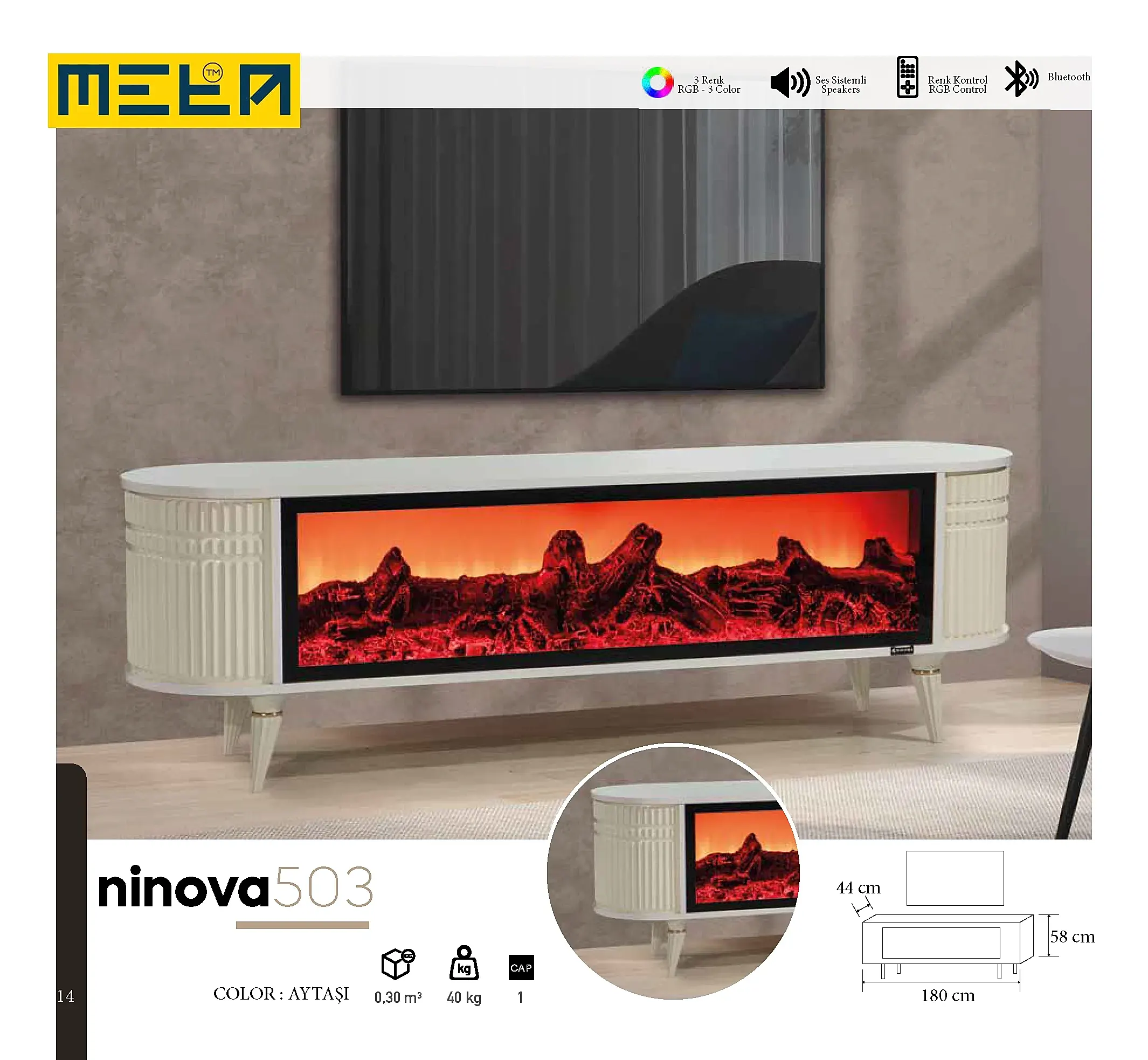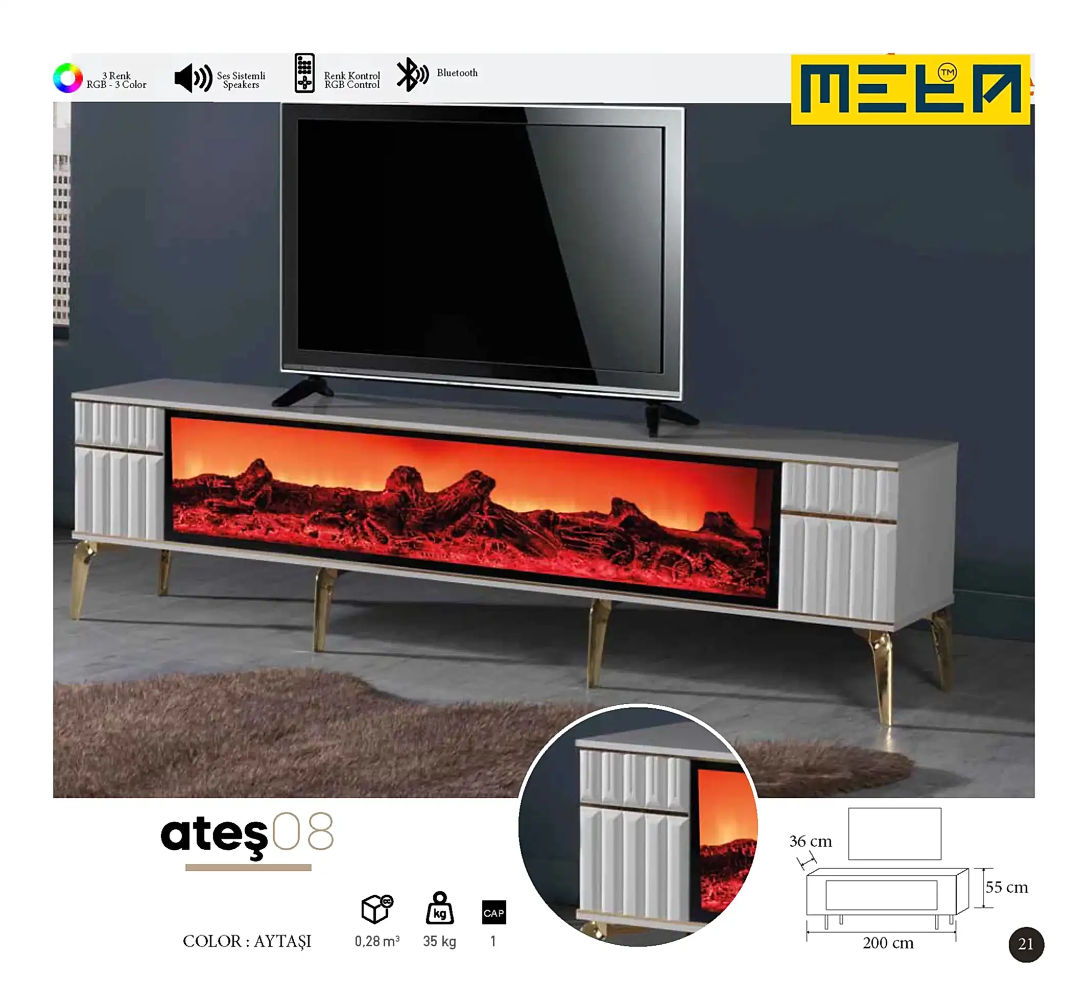 KAYSERI TV STAND WITH FIREPLACE