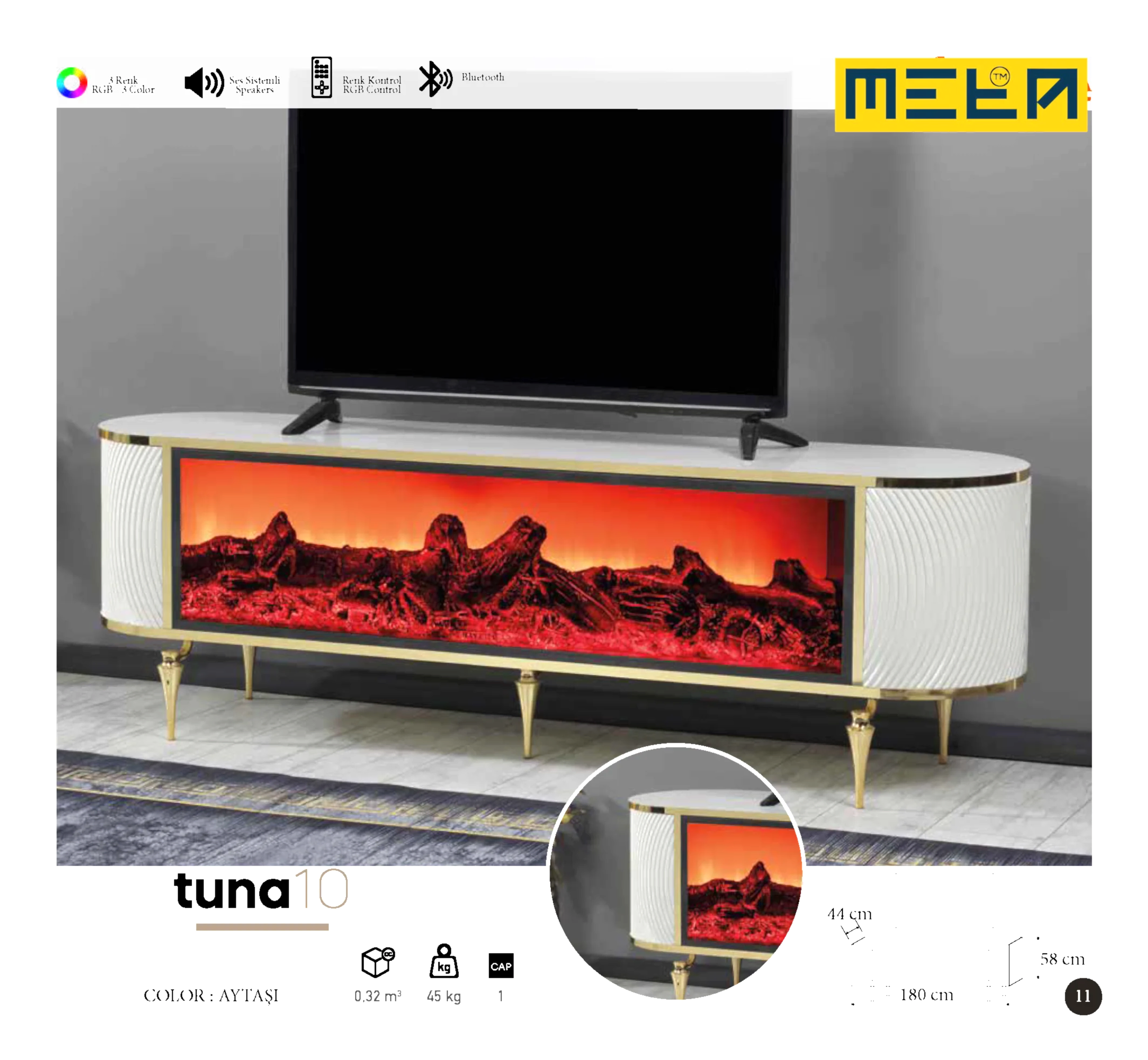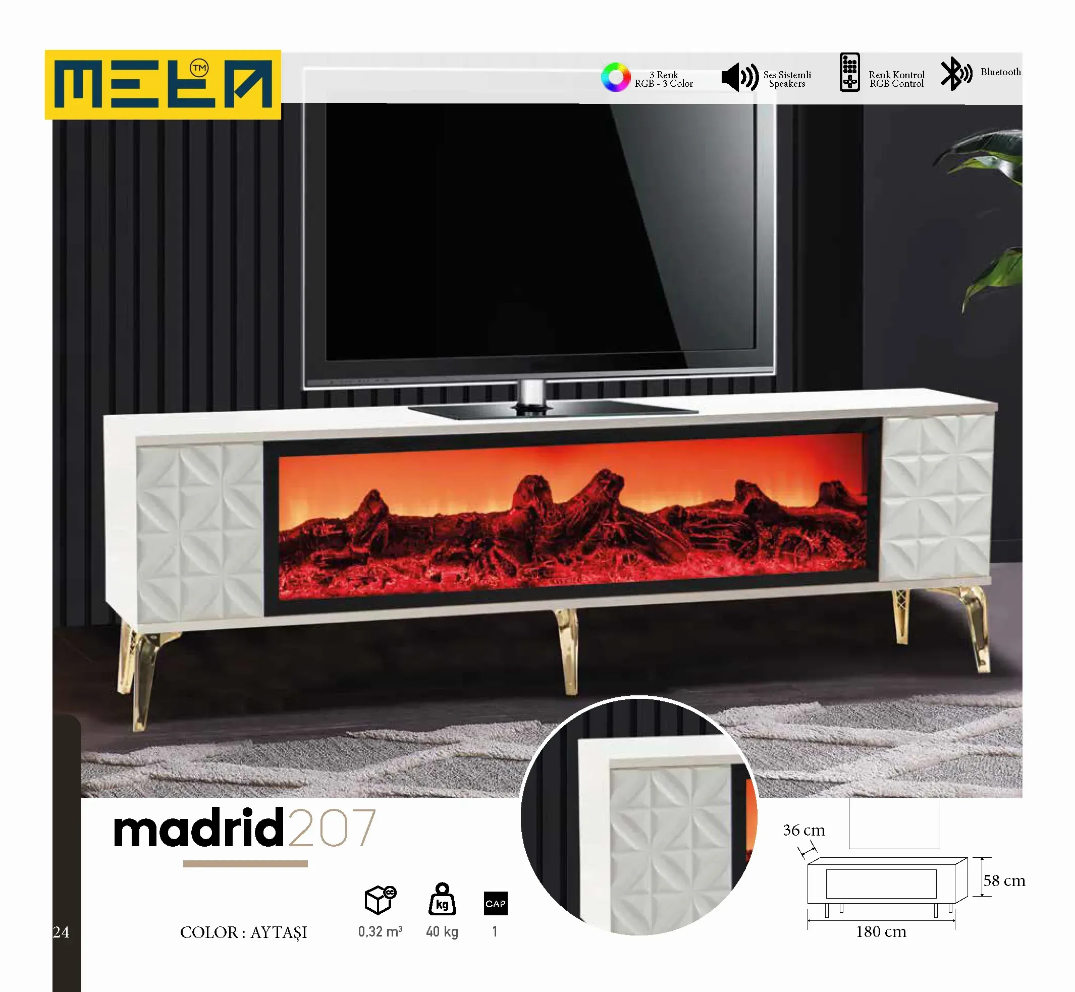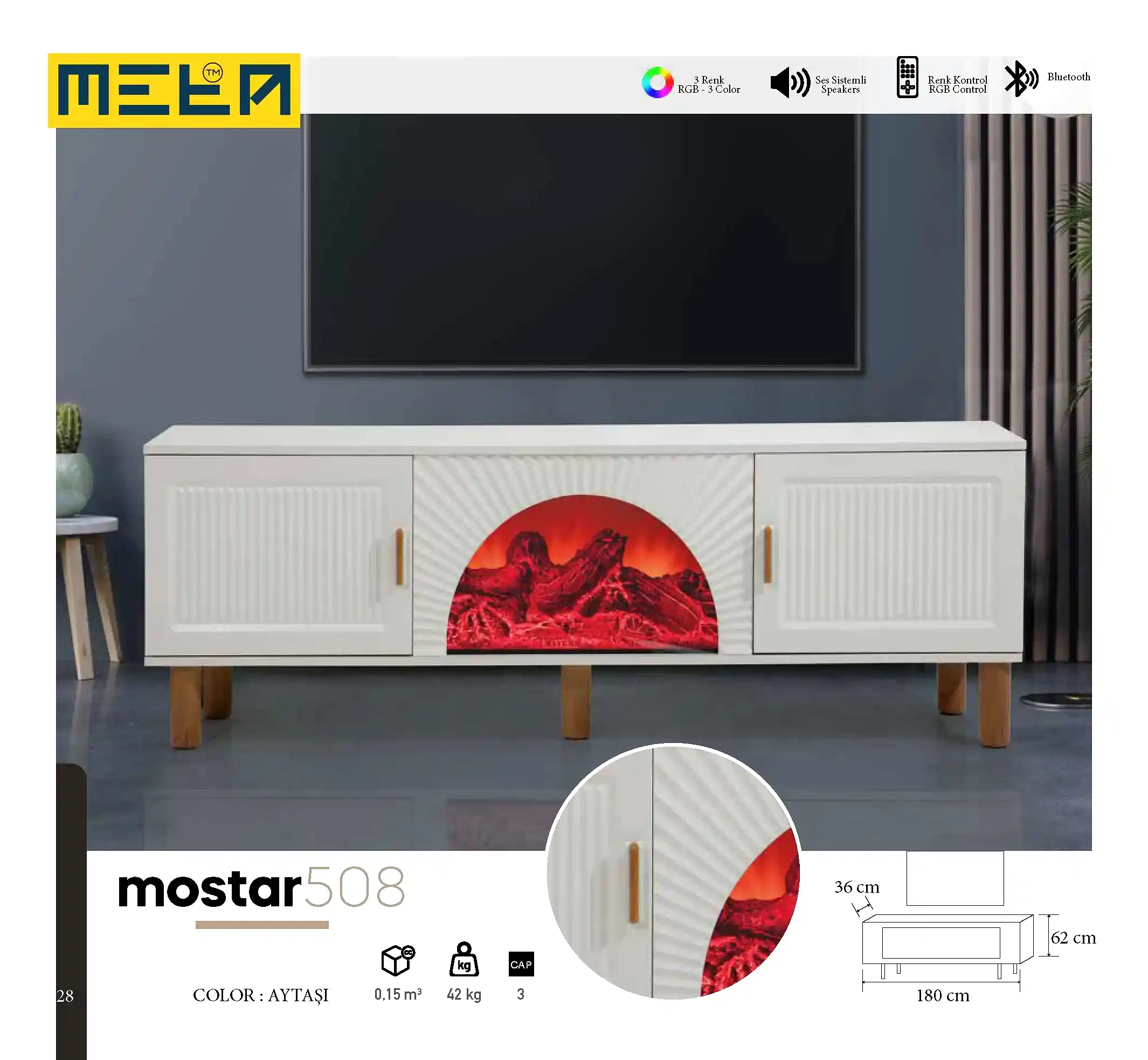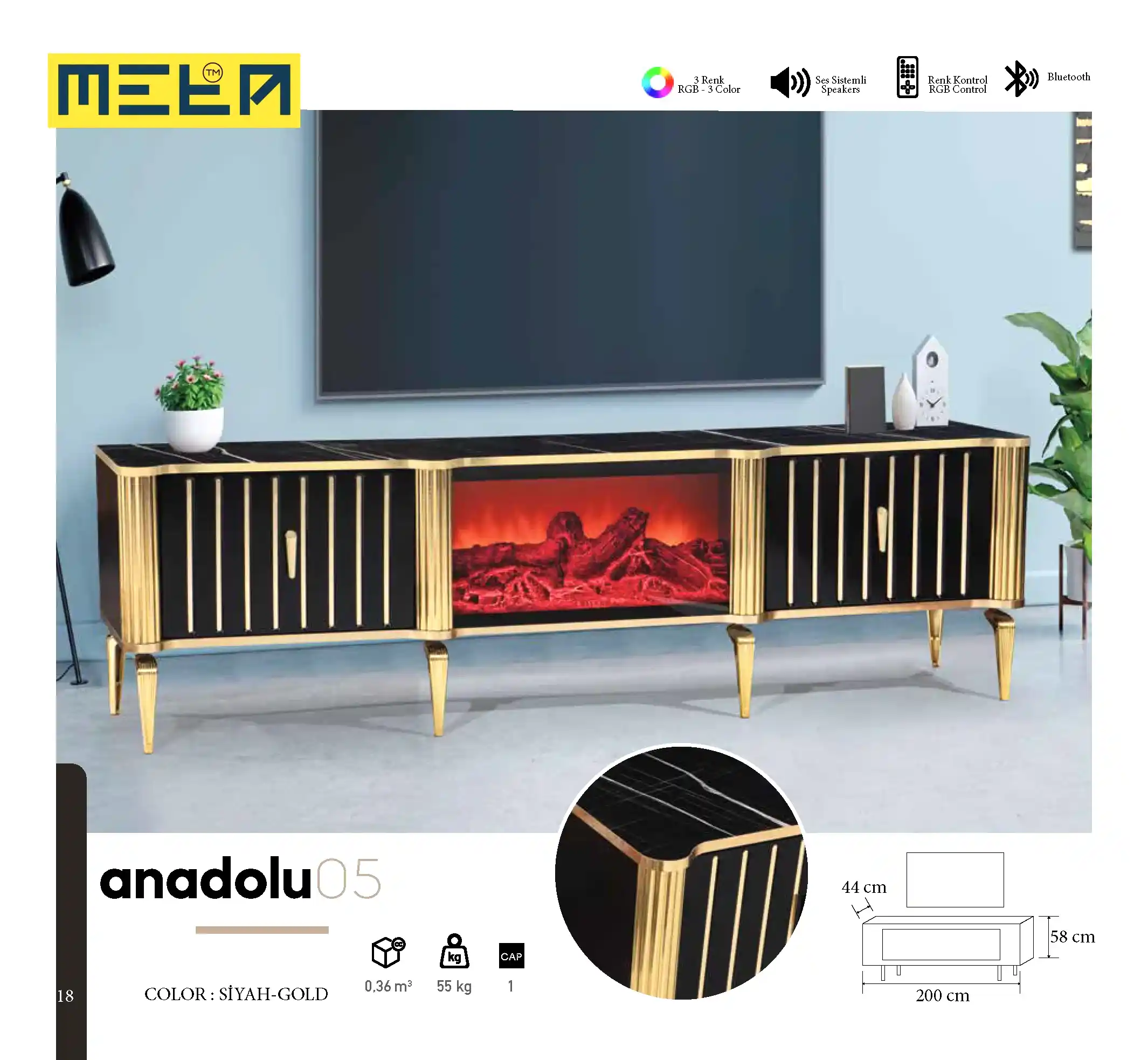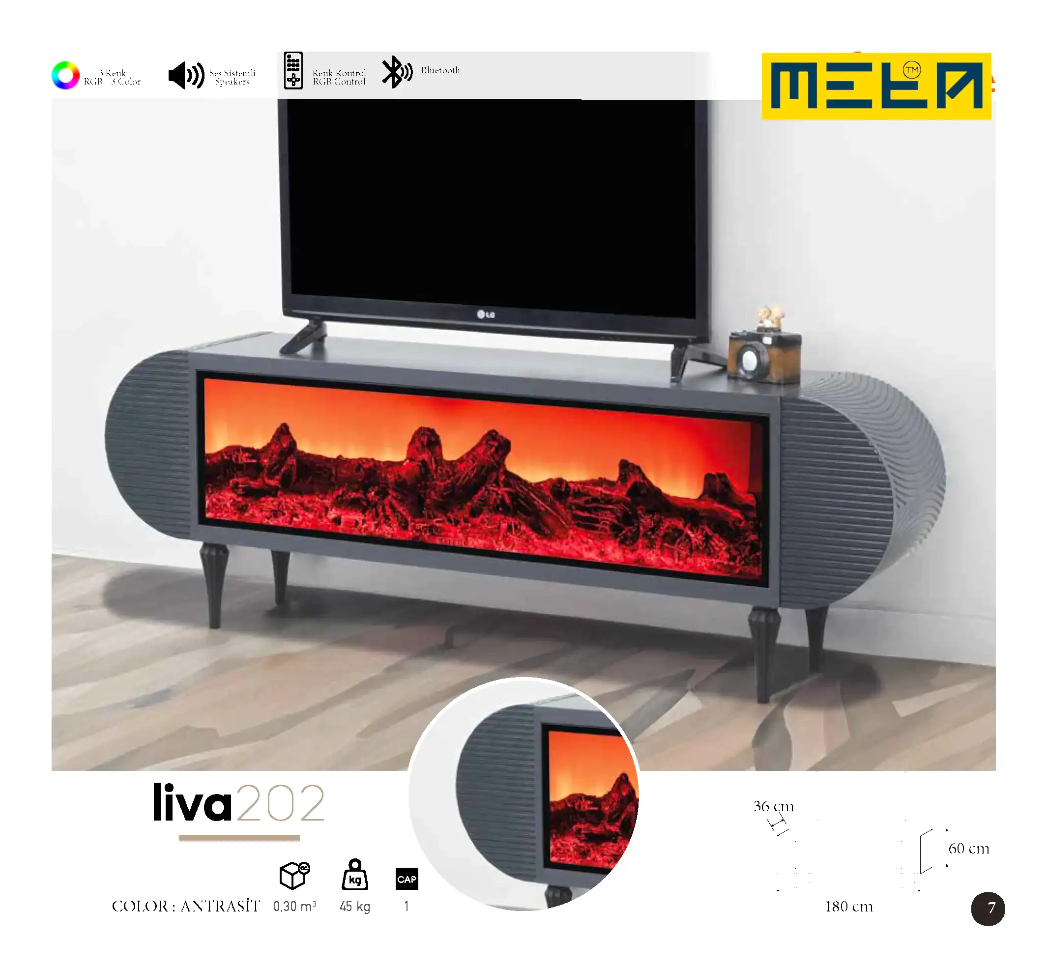 KAYSERI TV STAND WITH FIREPLACE
