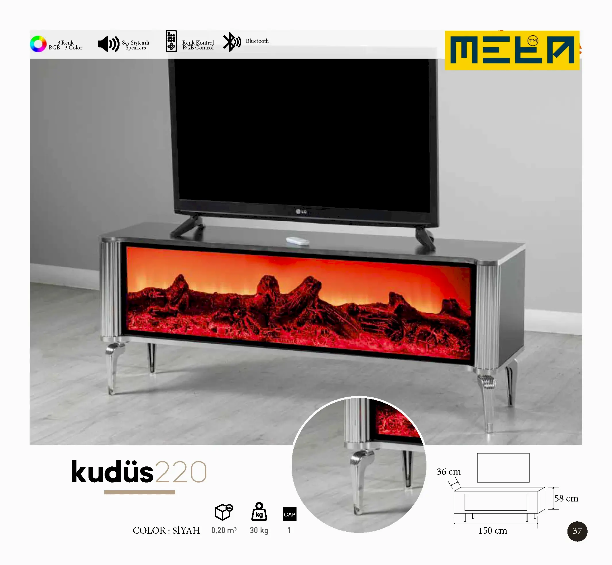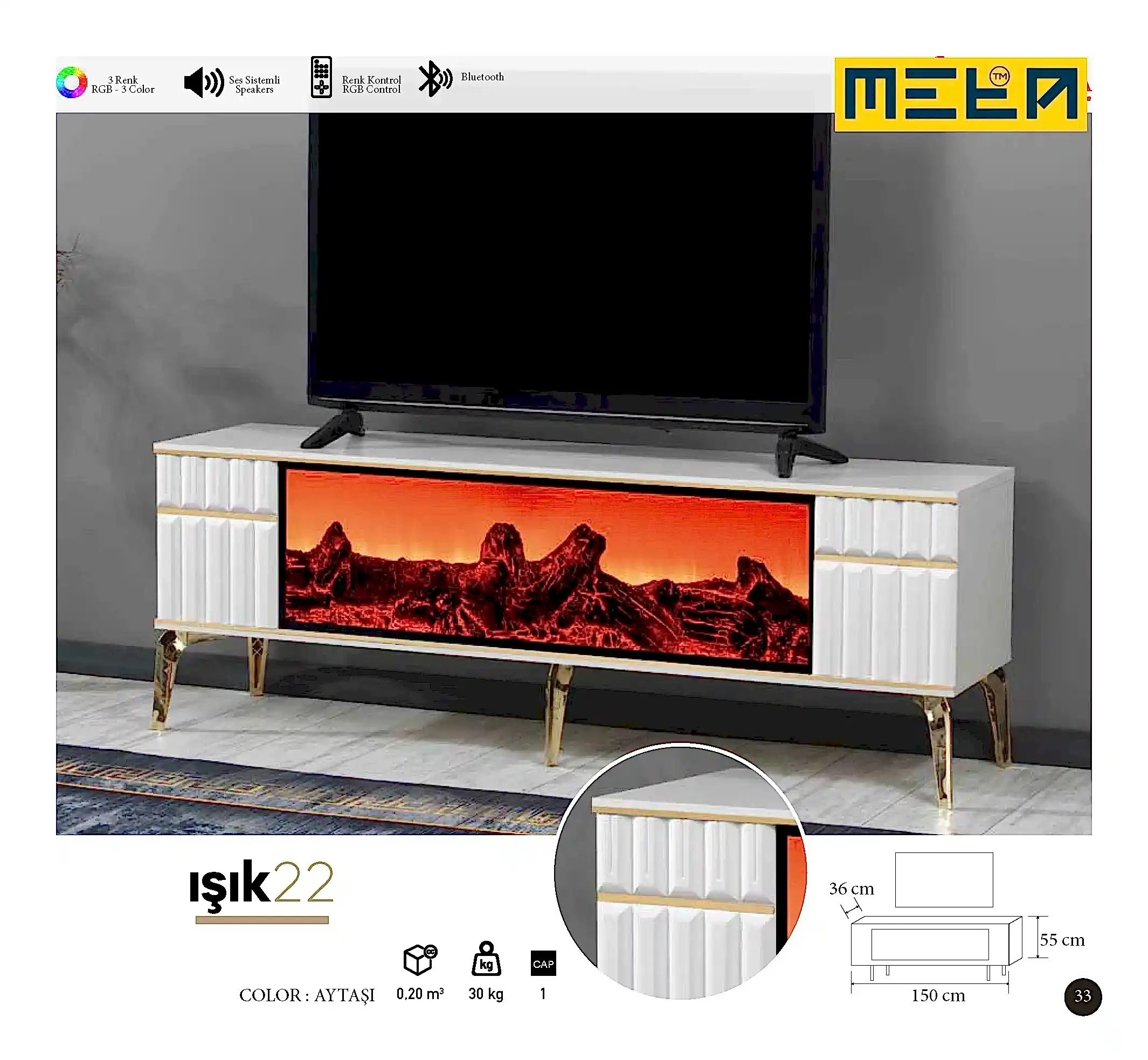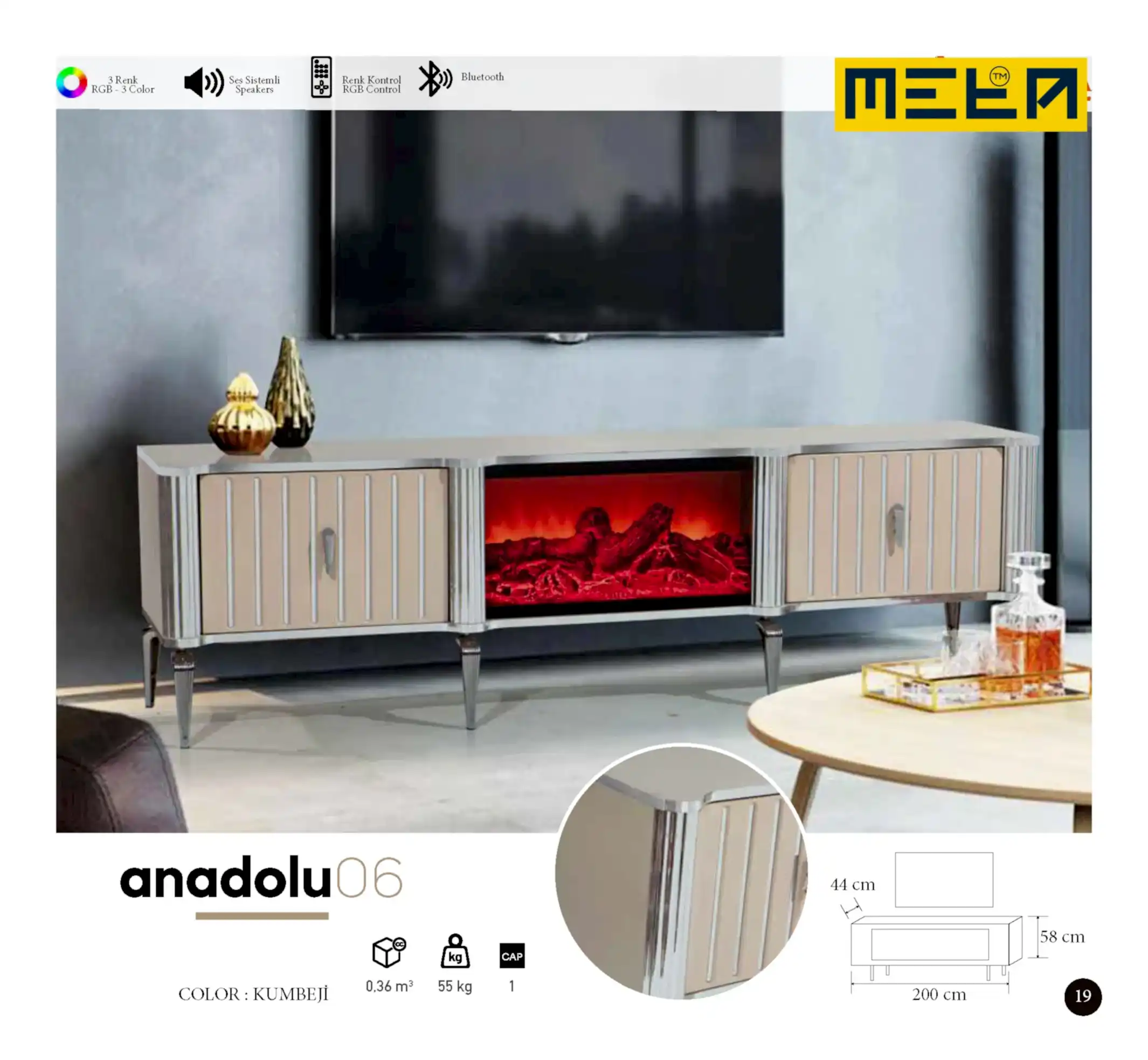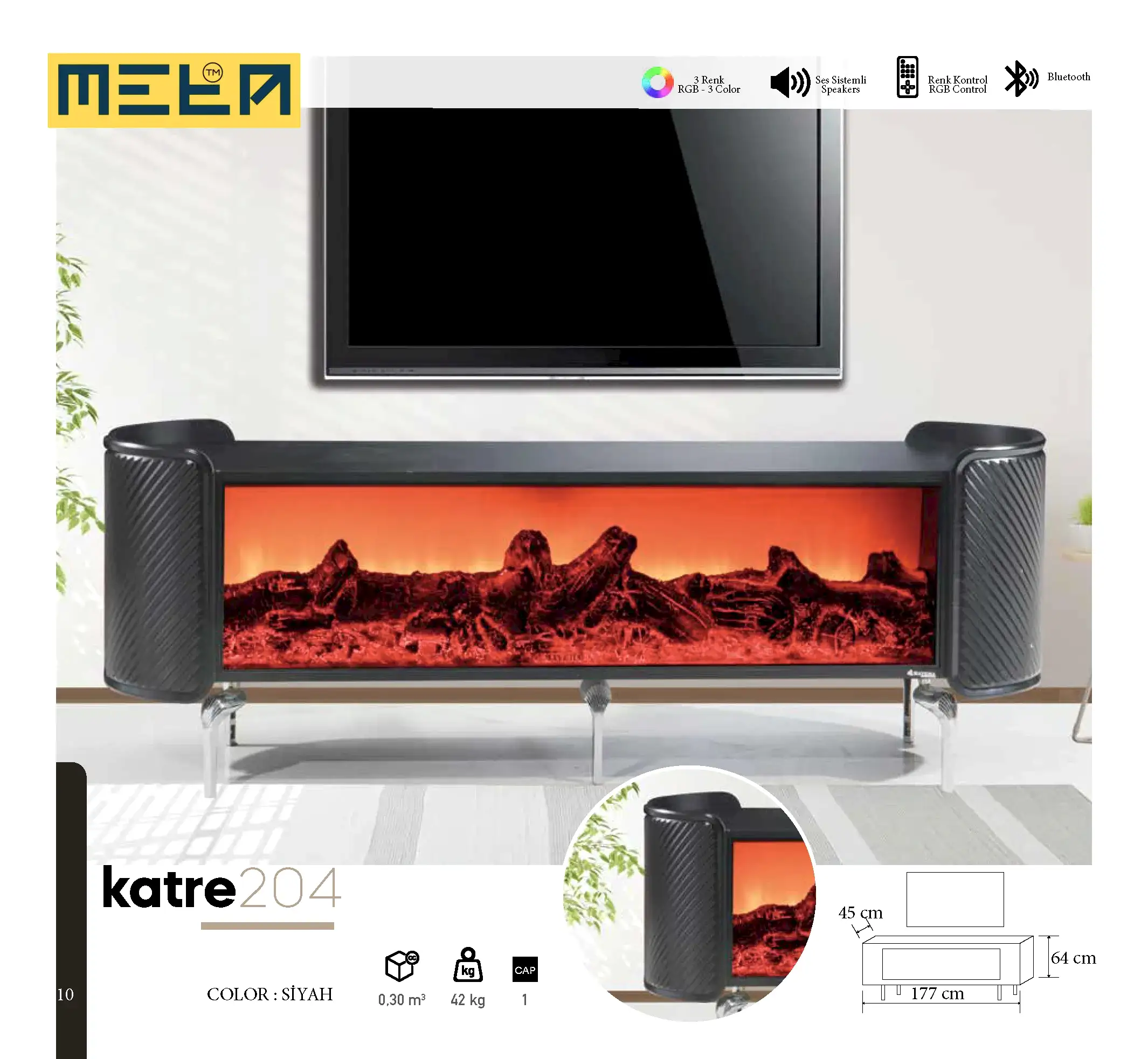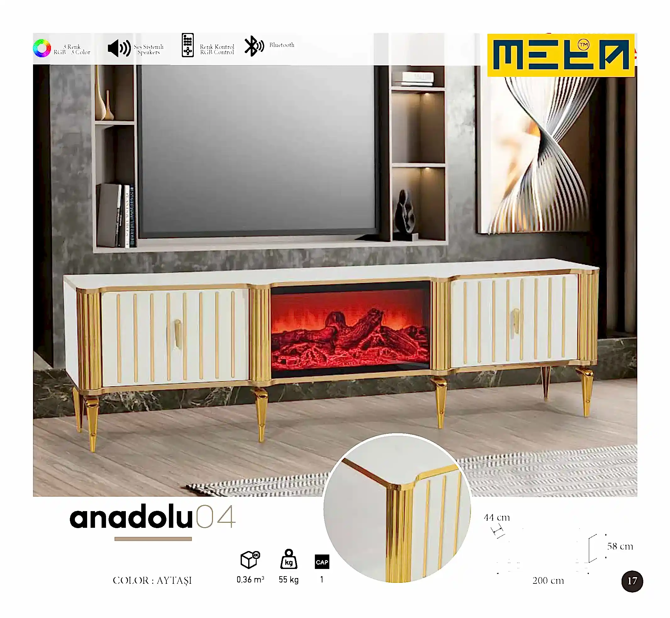 KAYSERI TV STAND WITH FIREPLACE
