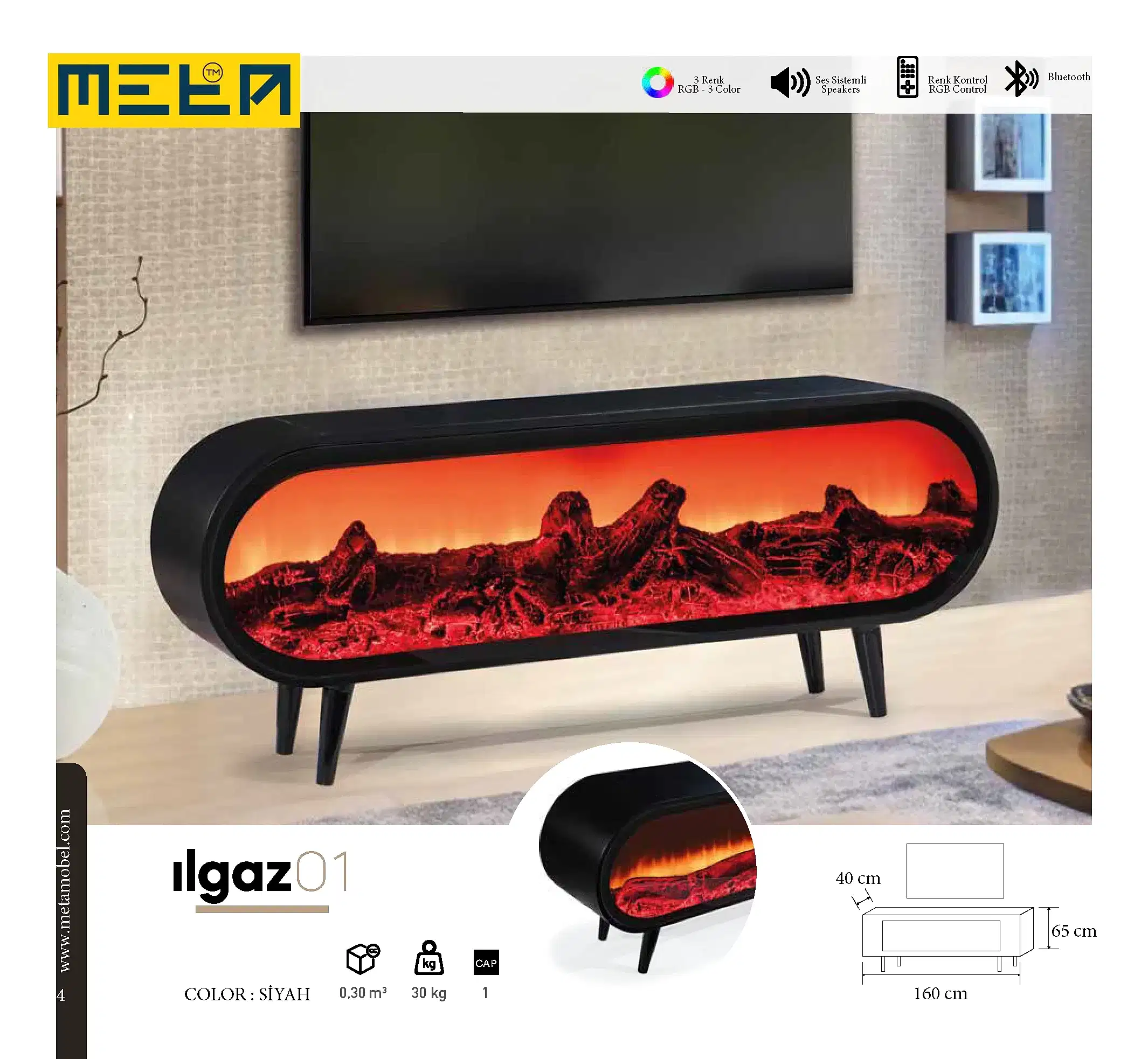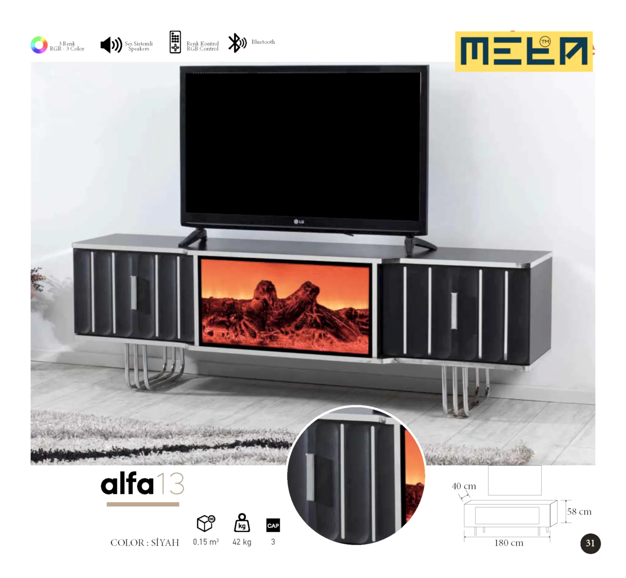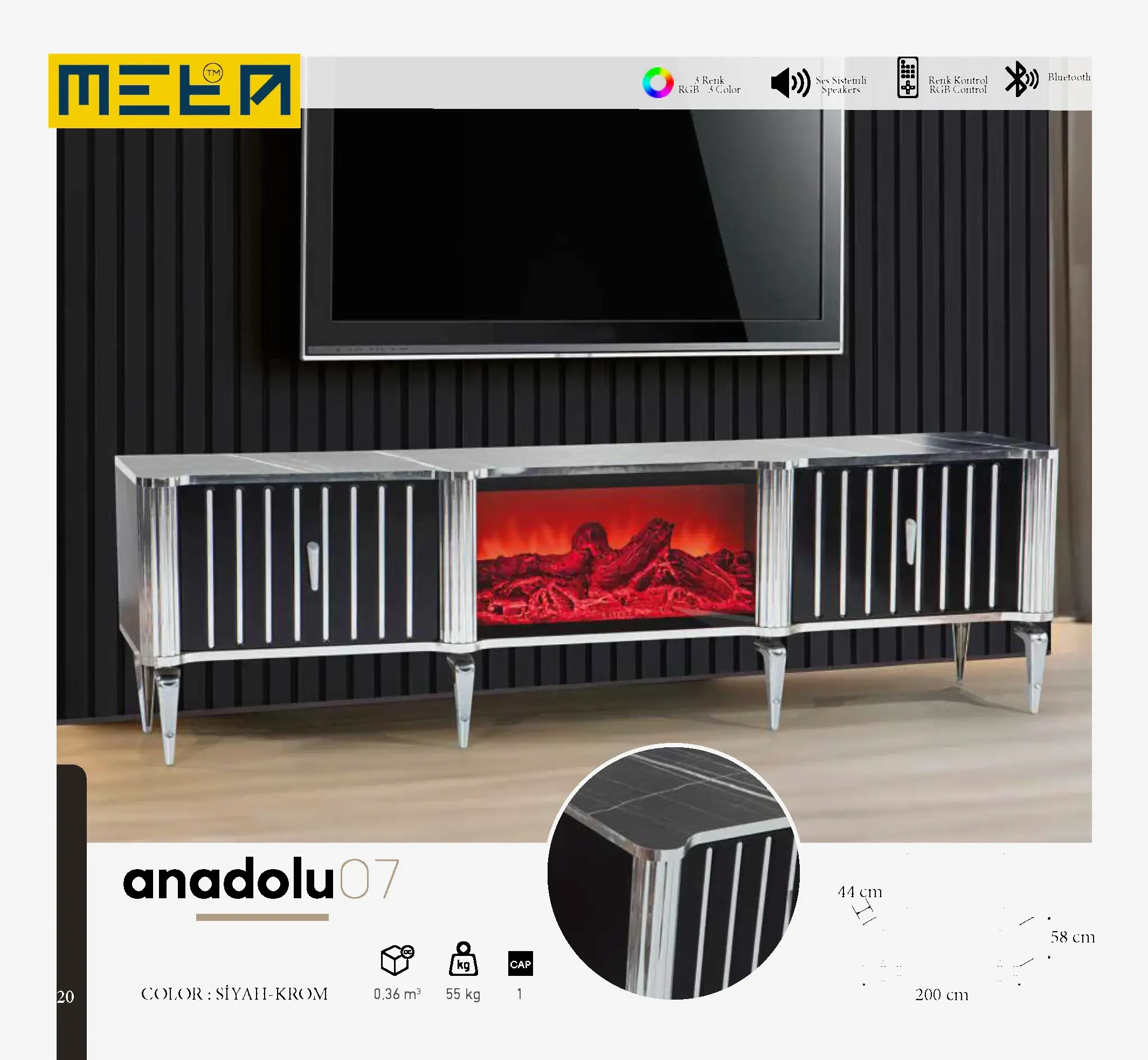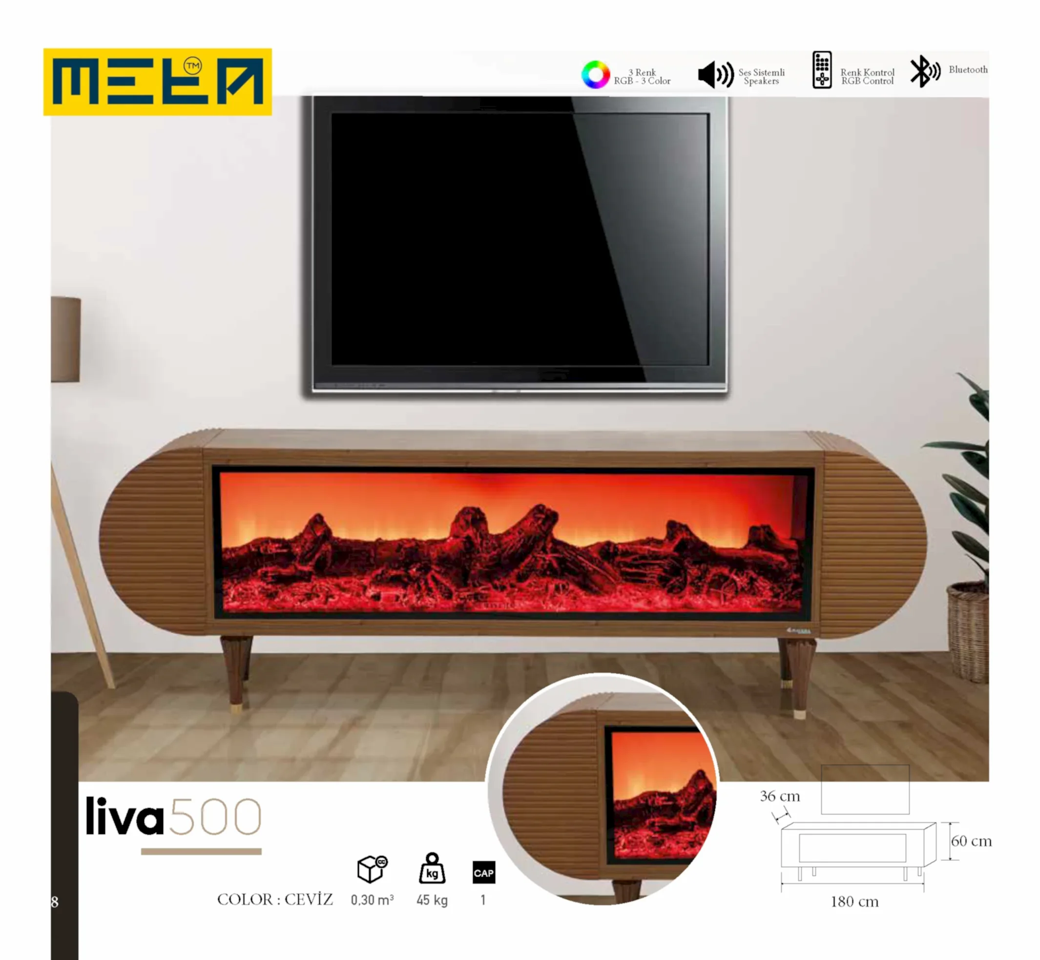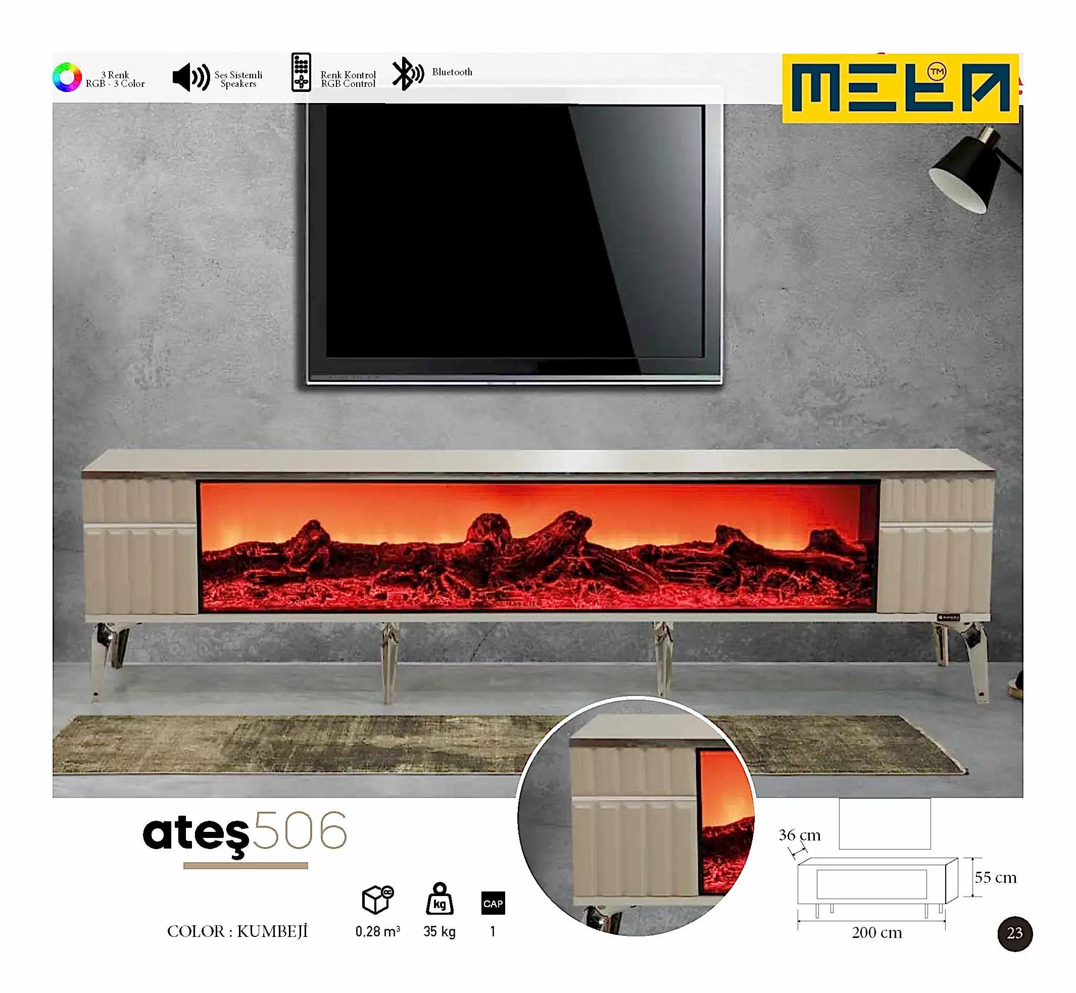 KAYSERI TV STAND WITH FIREPLACE