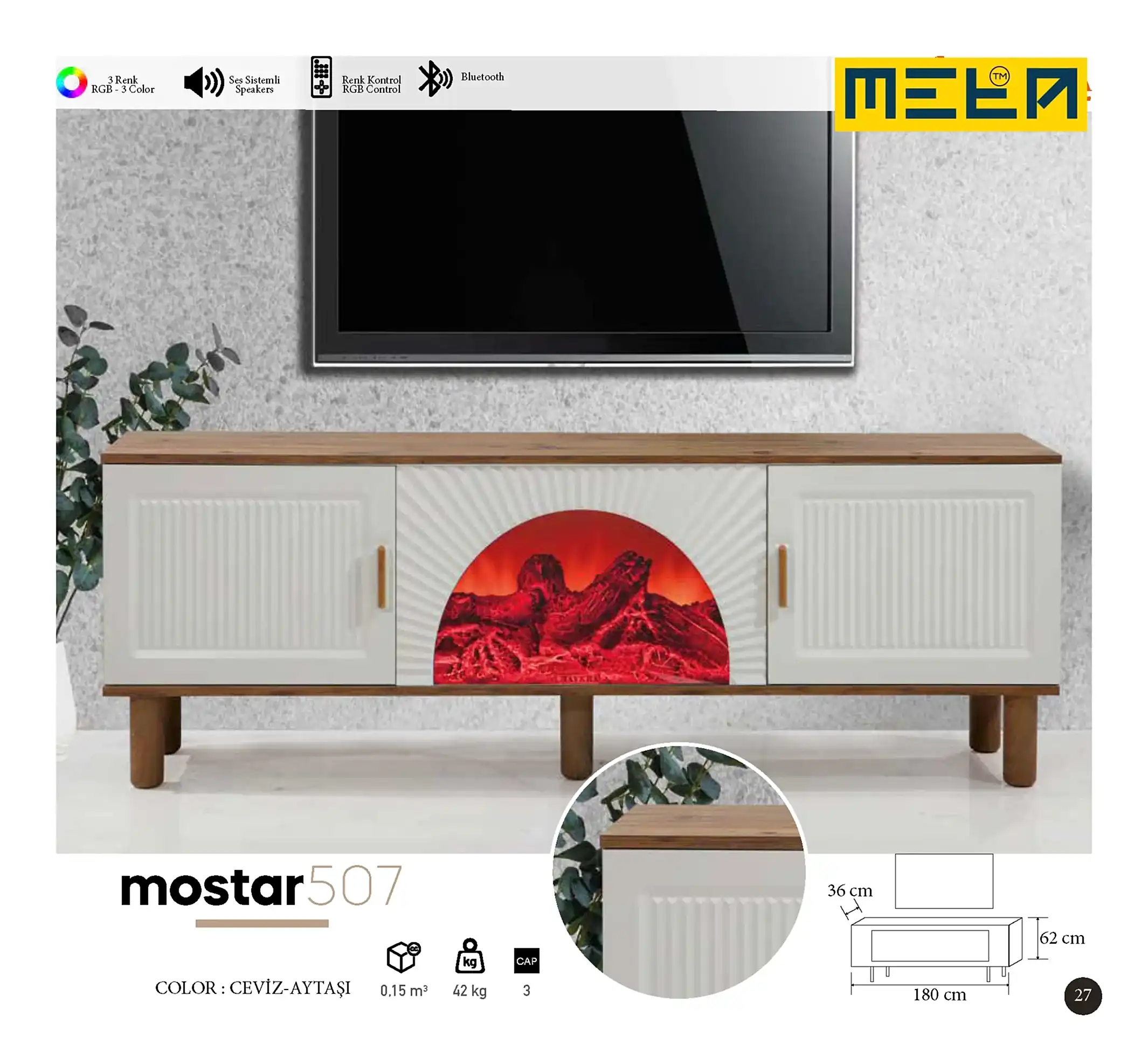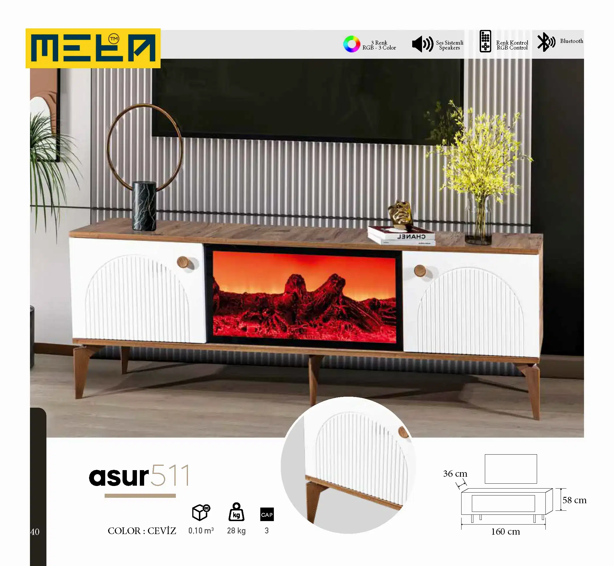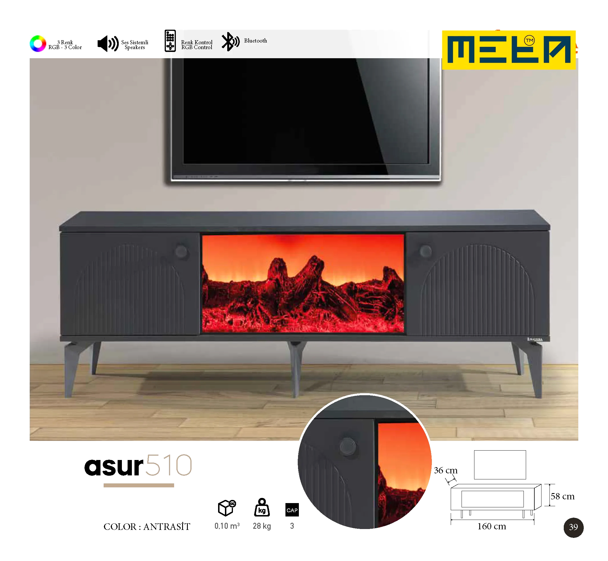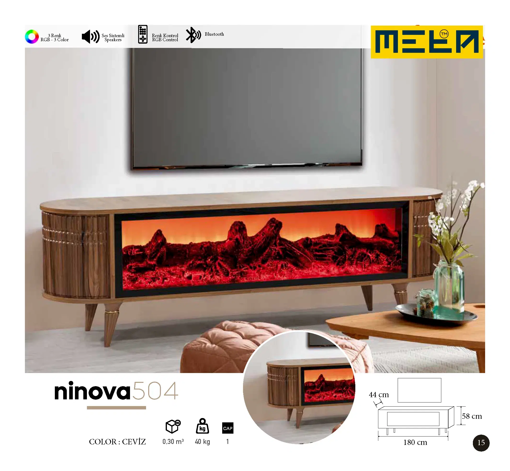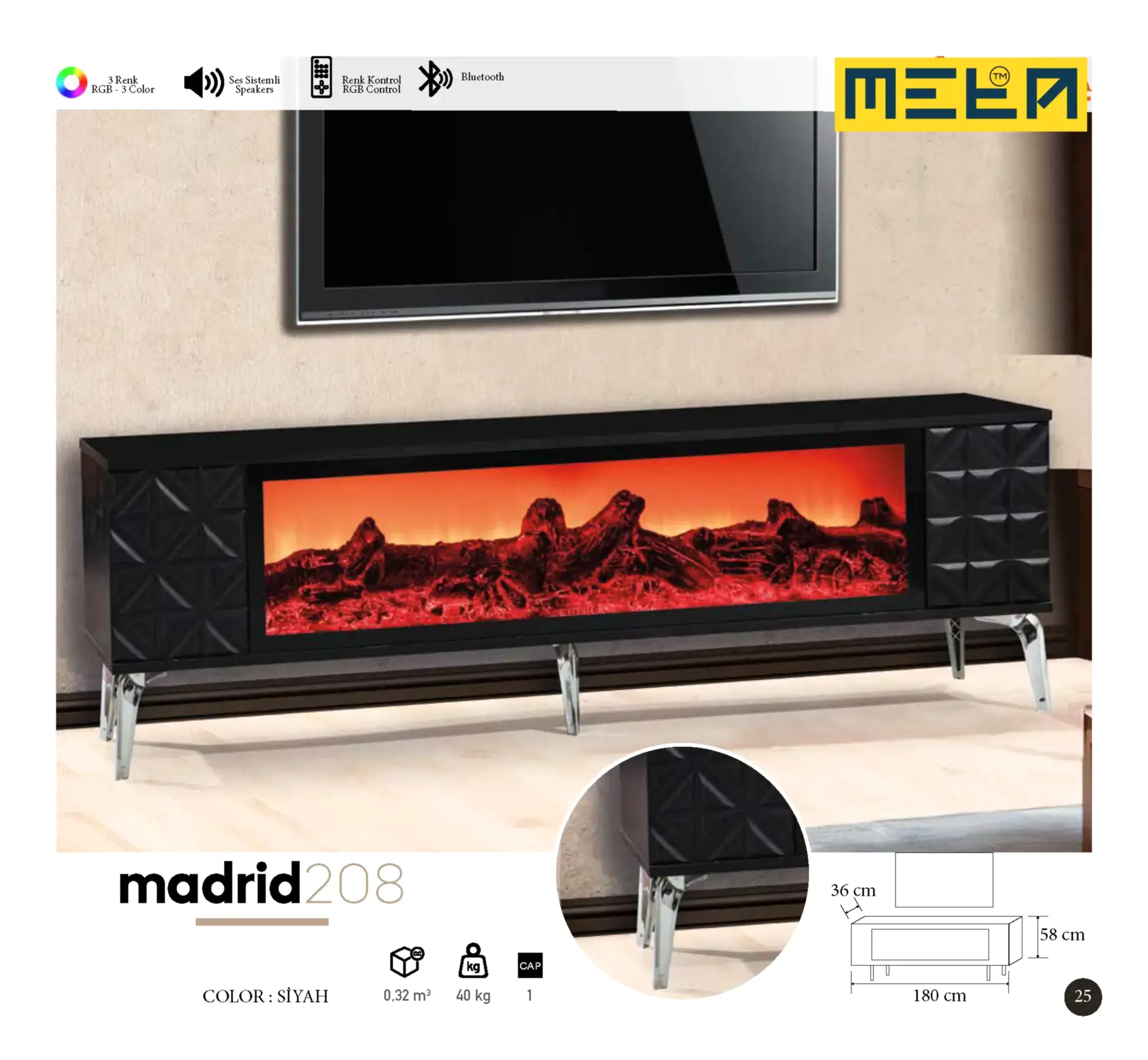 KAYSERI TV STAND WITH FIREPLACE